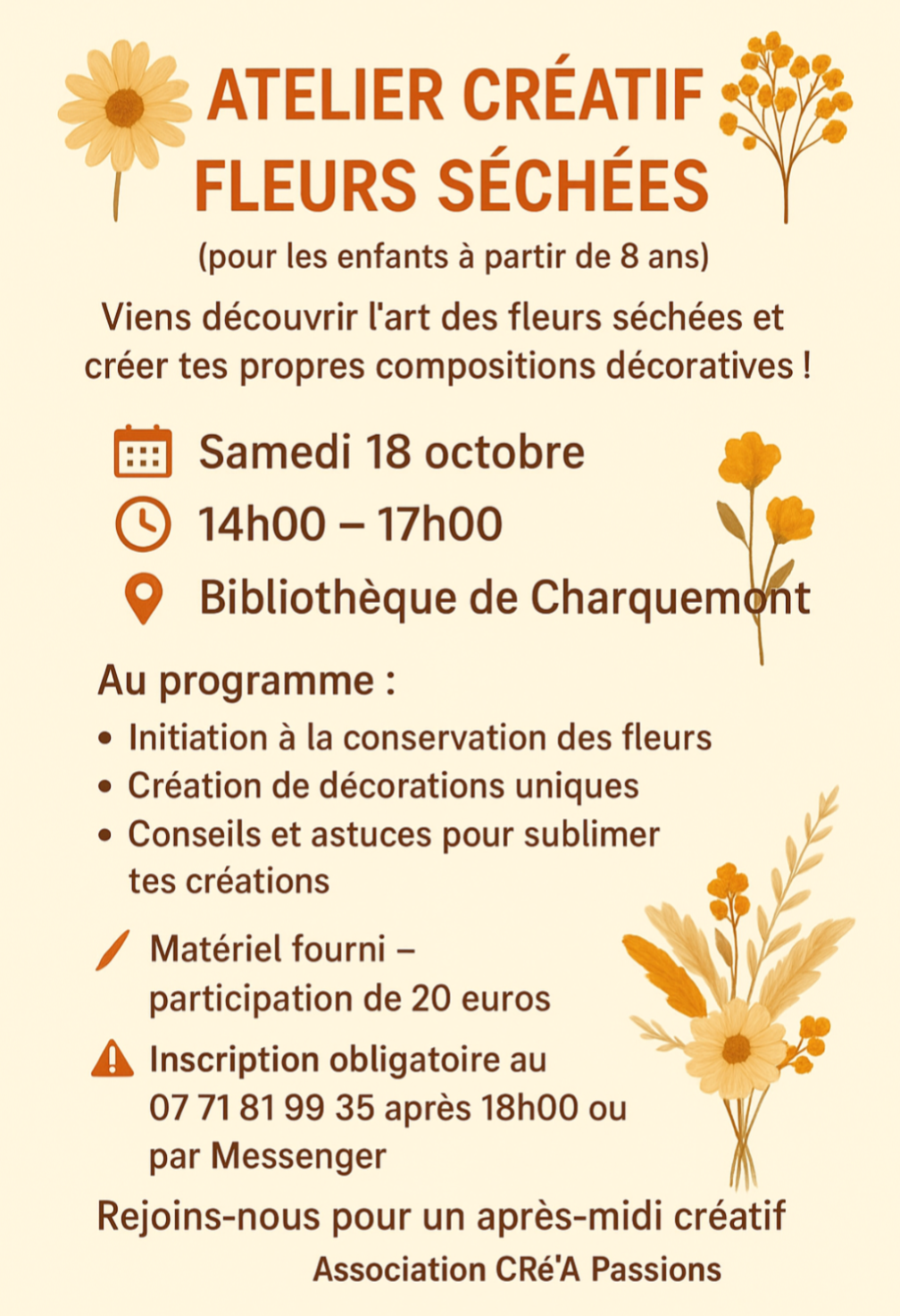 le samedi 18 octobre de 14h00 à 17h00 à la Bibliothèque Municipale de Charquemont