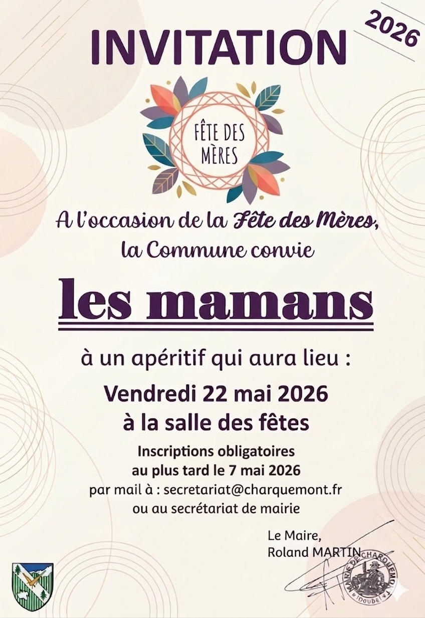 Pensez à vous inscrire en mairie au plus tard le 7 mai pour l’apéritif de la fête des mères offert par la commune